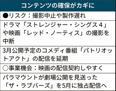 最高コンテンツ責任者のテッド・サランドス氏は「20年に配信予定のドラマや映画の多くは既に撮影が済んでいる」と話す。リモートで編集作業を進め、影響を最小限に抑える考えだそうだ。ただ撮影できない状況が続けば、中期的には新作の品ぞろえに悪影響が出る可能性もある。