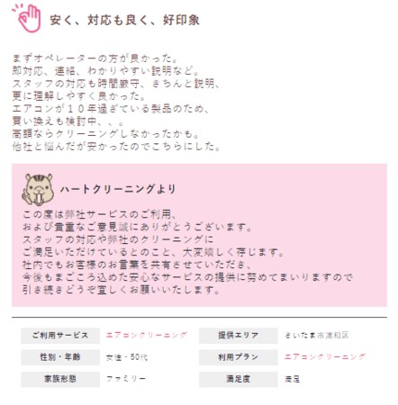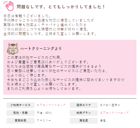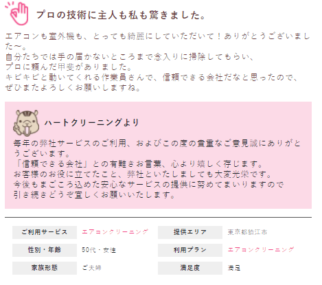 Q.弊社ハートクリーニングの総合的にいかがでしたか?
