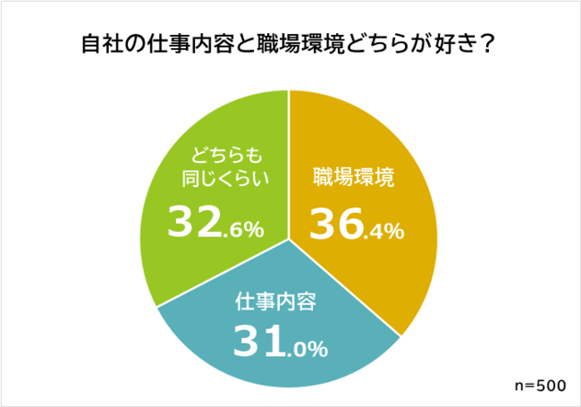 「仕事内容」より「職場環境」を好きな人が若干多い